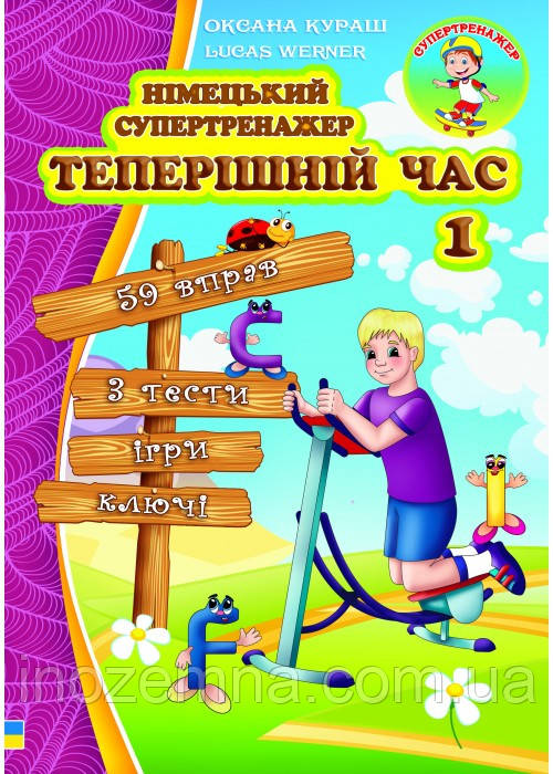 Цей тренажер покликаний допомогти учням навчитися правильно відмінювати в теперішньому часі дієслова, які змінюються за правилами, а також кілька найбільш поширених неправильних дієслів. У книги таксамо правила побудови тверджень з прямим і зворотним порядком слів, запитань і заперечень.