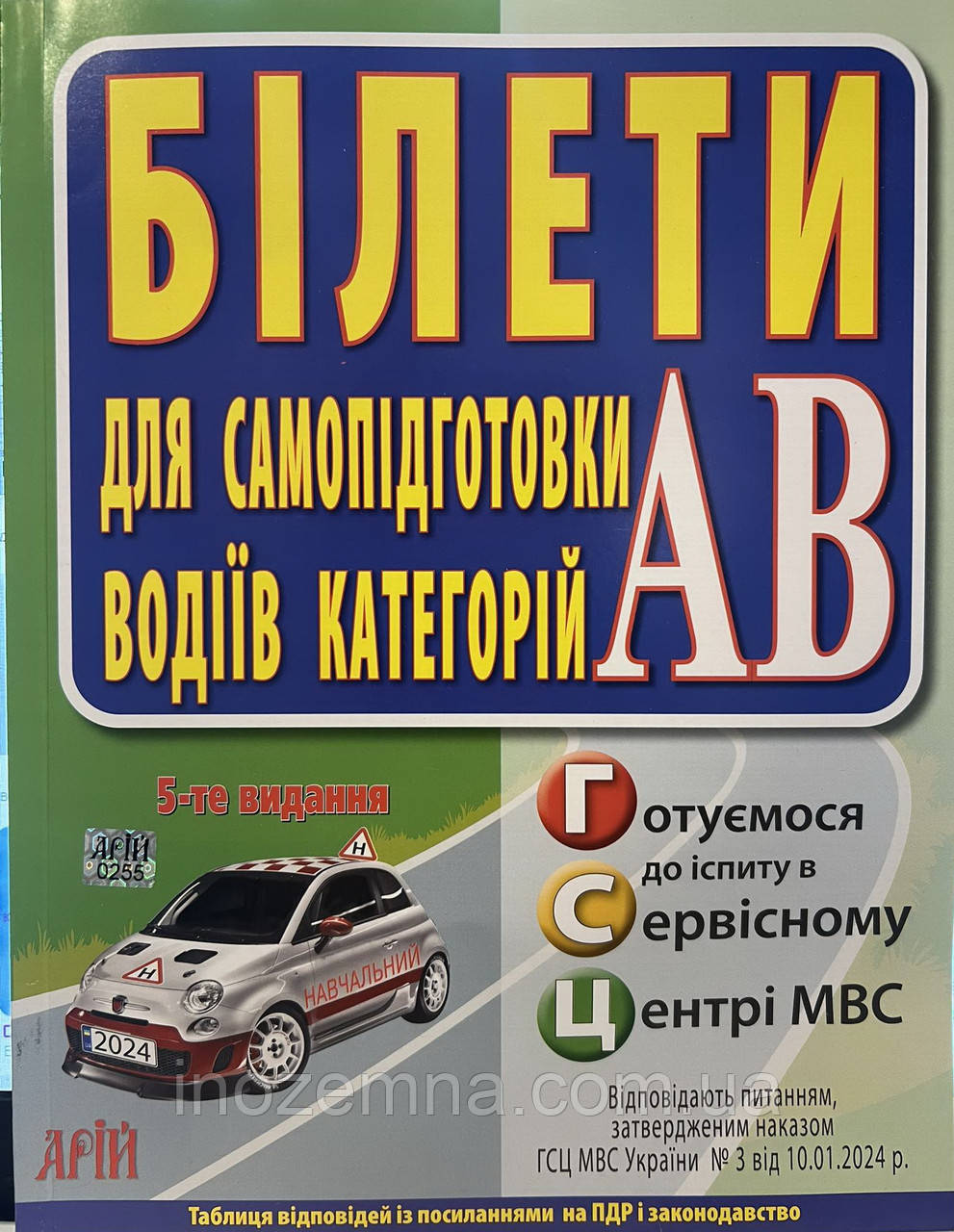ПДР. Білети для самопідготовки водіїв категорій АВ. 5-те видання. Видавництво "Арій"